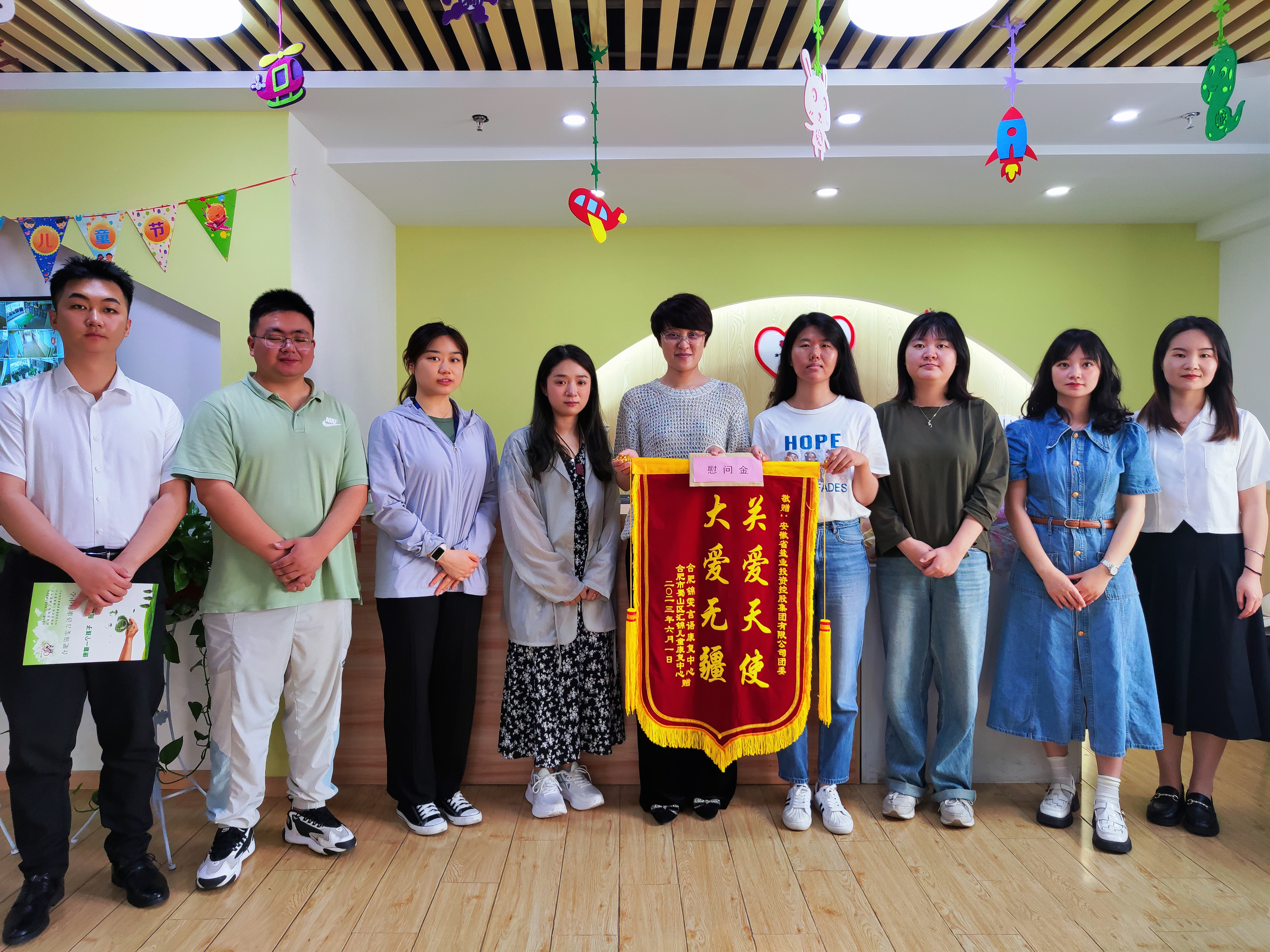 在康復中心老師的介紹下,志愿服務隊的團員青年們詳細地了解了學校的日常教學情況以及孩子們的課程訓練及康復狀況,對聽力障礙和自閉癥有了更深一步的了解。隨后,集團公司團委向康復中心送上了慰問金,用于購買日常上課的教具圖書,并給孩子們帶來了零食和美好的祝福。