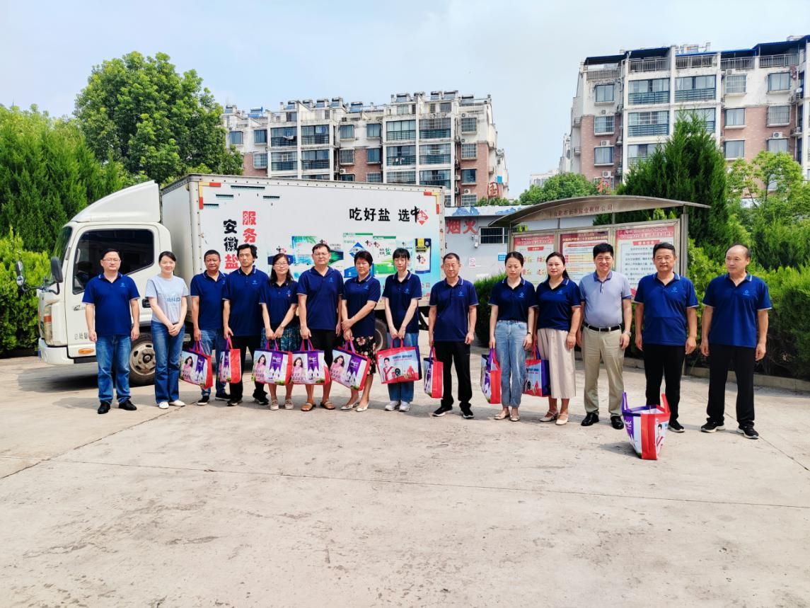 炎炎夏日送清涼,滴滴關懷暖人心,一份清涼一份關懷。8月11日安徽鹽業發展有限公司工會組織夏日送清涼慰問活動。公司工會主席曹明新帶隊前往長豐、淮南鹽業公司向一線營銷人員進行現場慰問,并送去防暑降溫物資。