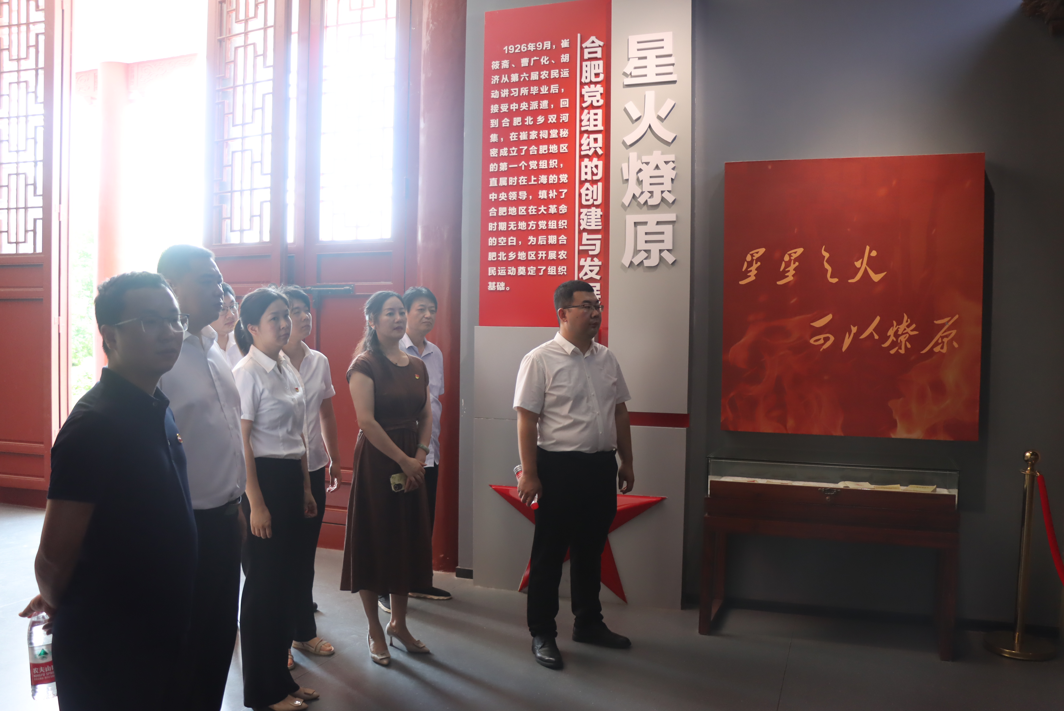 中共合肥北鄉支部紀念館是合肥市愛國主義教育基地、黨史教育基地、黨風廉政建設教育基地,同時也是為紀念合肥地區第一個中國共產黨組織(中共合肥北鄉支部)而建。大家跟著講解員認真了解了中共合肥北鄉支部創建歷史背景與開展革命光輝歷程走進崔筱齋紀念館,大家在簡樸莊重的展廳里認真了解了崔筱齋烈士的生平履歷、革命歷程。展廳里珍貴的文物實物、翔實的檔案資料,吸引大家駐足良久并詳細詢問有關情況,深入了解了合肥北鄉黨支部艱苦卓絕的奮斗史和光輝歷程。懷著無比崇敬的心情,黨員黨旗重溫入黨誓詞