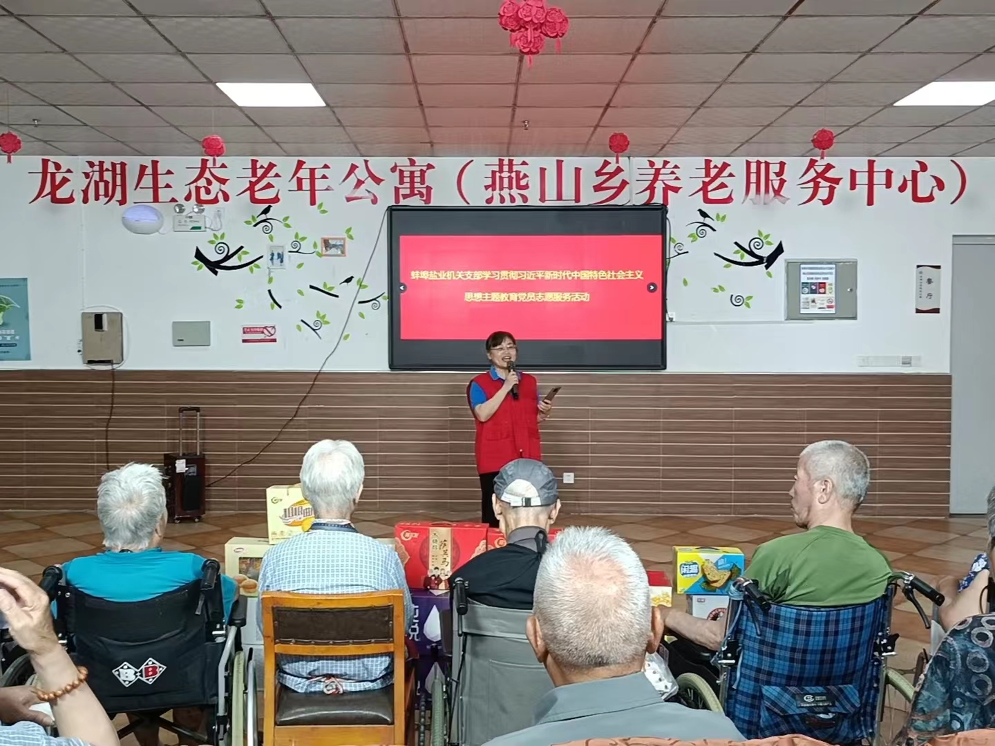 為深入推進學習貫徹習近平新時代中國特色社會主義思想主題教育,傳承和弘揚中華民族尊老敬老的傳統美德,營造愛老助老的良好社會氛圍,7月29日上午,蚌埠市鹽業公司機關黨支部組織黨員志愿者到龍湖生態老年公寓開展主題教育黨員志愿服務活動。