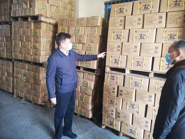 邱軍一行還現場了解了各公司鹽品、非鹽產品庫存及銷售情況,查看了省級食鹽儲備情況以及淮南市公司食鹽儲備庫項目建設進展情況。