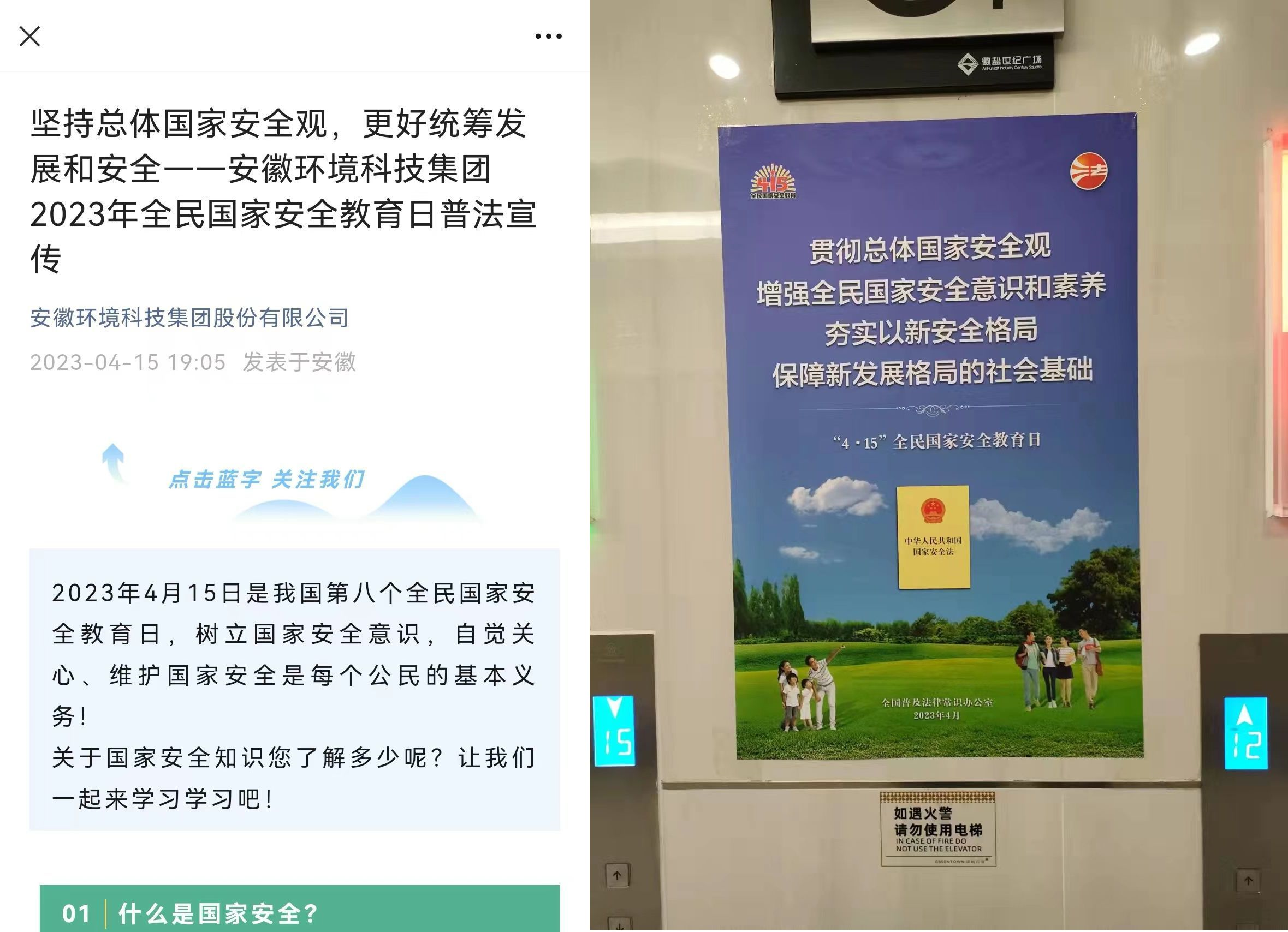 環(huán)境公司、發(fā)展公司、地產(chǎn)集團(tuán)在微信公眾號(hào)、官網(wǎng)政策法規(guī)平臺(tái)上傳國(guó)家安全相關(guān)法律法規(guī),在辦公場(chǎng)所張貼宣傳海報(bào)。
