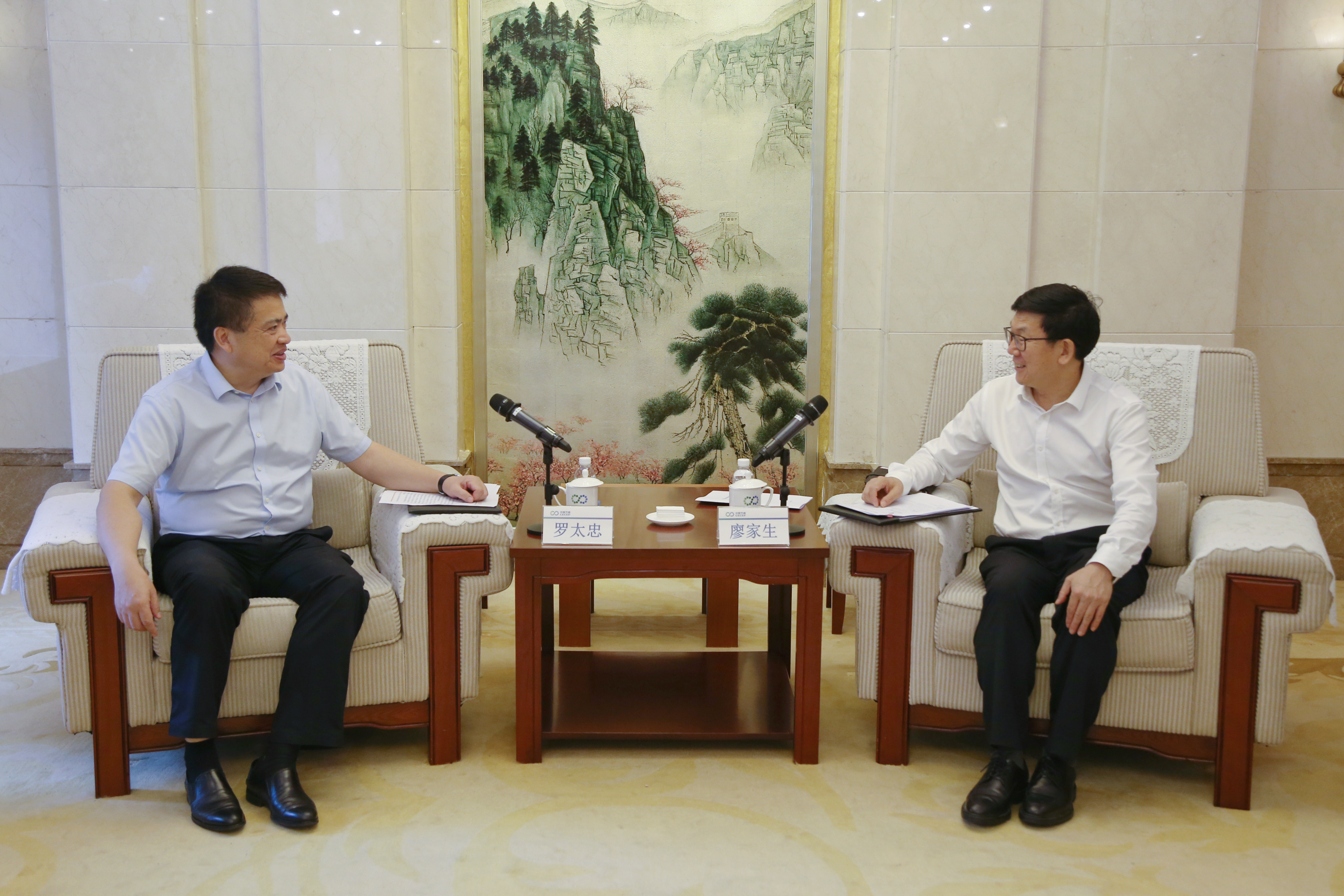 ▲省生態環境集團黨委書記、董事長羅太忠與與中國節能集團黨委書記、董事長廖家生進行交流座談