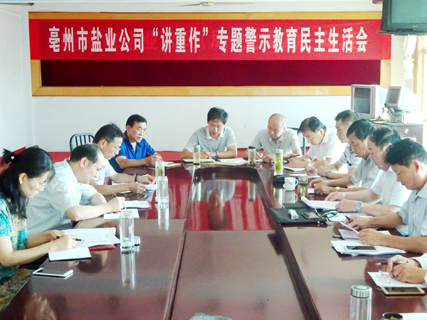 會上,市公司董事長、經理(局長)榮立華通報了亳州市鹽業公司年初民主生活會查擺問題整改情況,紀委書記王建中通報會議準備情況及征求群眾意見情況,李文俊代表亳州市公司黨委班子作對照檢查。黨委班子成員緊緊結合自身實際,實事求是,把自己擺進去作對照檢查,接受與會其他同志的批評,并對批評意見做出積極回應和表態。