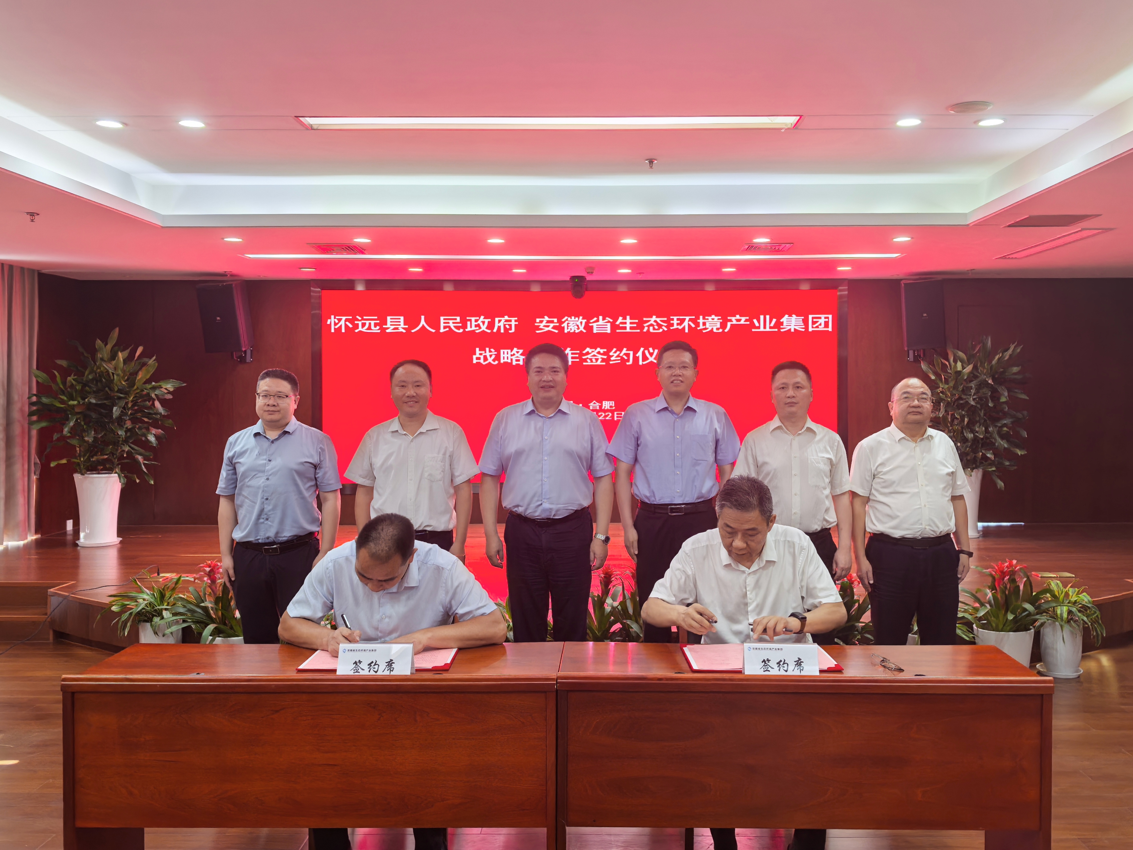 7月22日,省生態(tài)環(huán)境產(chǎn)業(yè)集團與懷遠縣簽署戰(zhàn)略合作協(xié)議。省生態(tài)環(huán)境產(chǎn)業(yè)集團黨委書記、董事長羅太忠與蚌埠市委常委、懷遠縣委書記潘君齊出席簽約儀式并見證簽約。