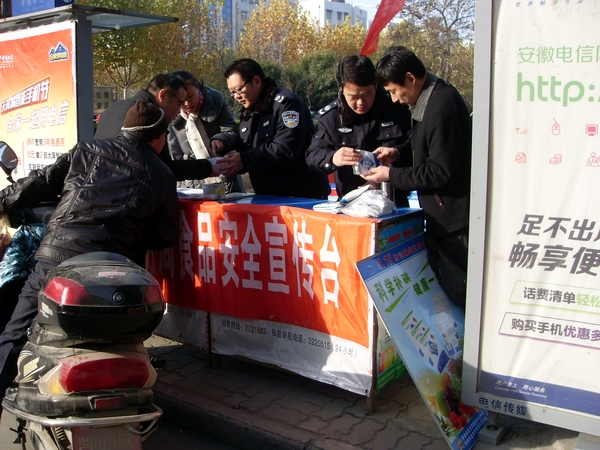 在本次活動中,阜陽市局設立宣傳咨詢臺,宣傳展架4個,擺放精心準備的宣傳資料和傳單,展示近期在市場查獲得各類假冒鹽品,現(xiàn)場接受市民咨詢散發(fā)宣傳單300余份,向群眾宣傳普及鹽業(yè)法規(guī),并推出了現(xiàn)場教市民辨別真假碘鹽的活動,咨詢臺前觀看宣傳圖版和前來咨詢的群眾絡繹不絕,廣大市民對國家為確保民生,食鹽專營的政策深表理解和支持。市領導對宣傳點進行慰問檢查時,對阜陽市的鹽政管理給予了充分肯定和認可,并鼓勵大家再接再厲再創(chuàng)佳績。