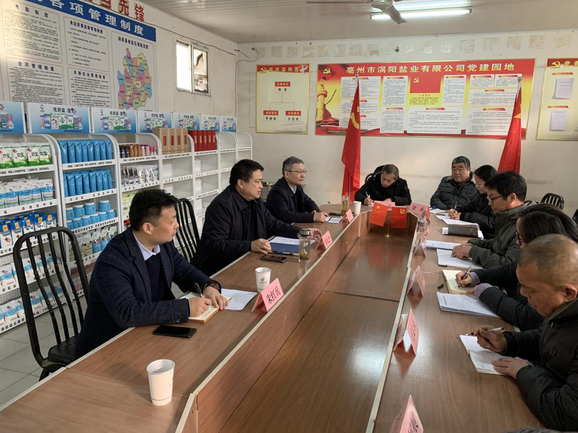 12月12日下午,省生態環境集團黨委書記、董事長羅太忠到渦陽縣鹽業公司宣講習近平總書記考察安徽重要講話精神。