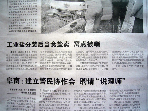 《潁州晚報》:工業鹽分裝后當食鹽賣 窩點被端