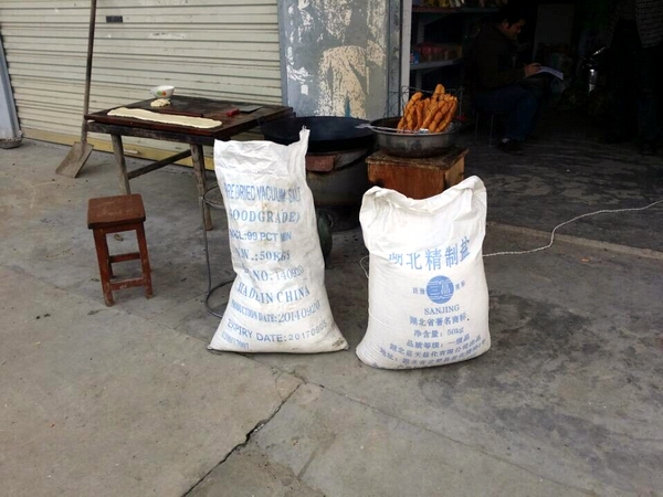 一經營戶自家開的超市里賣著食鹽,在超市門前加工油條用的卻是工業鹽。近日,該經營戶被查處。來自市鹽務局的消息稱,近期,我市連查使用工業鹽加工食品案15起。