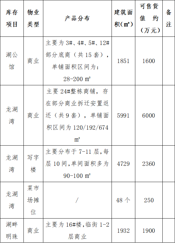 注:以上標段一和標段二的各類物業面積及數量,最終以項目現場貨量情況據實銷售。
