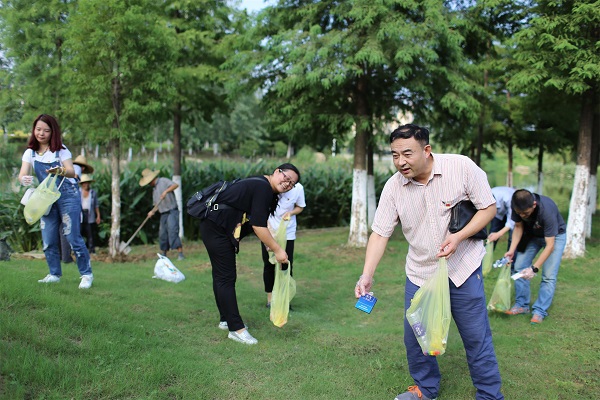 芳草萋萋,河水潺潺,活動日當天,全體參與人員佩戴黨徽,手持垃圾袋,頂著初秋的嚴嚴烈日,開始細心清除道路、草叢、林間、水邊的白色垃圾。大家爭先恐后,充分發揚不怕苦、不怕臟、不怕累的作風,展開地毯式搜索,紛紛將撿到的白色垃圾裝進袋子里。