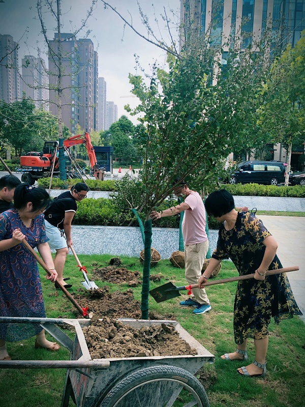 上午9時(shí)許,全體黨員準(zhǔn)時(shí)來(lái)到徽鹽世紀(jì)廣場(chǎng)商辦樓前,開(kāi)始植樹(shù)活動(dòng)。活動(dòng)現(xiàn)場(chǎng),黨員們不顧天氣炎熱,相互協(xié)作,配合默契,展現(xiàn)出一片熱火朝天的勞動(dòng)場(chǎng)景。搬運(yùn)樹(shù)苗、揮鍬挖坑、填土栽種……經(jīng)過(guò)1個(gè)多小時(shí)的努力,六株蔥郁的紫薇屹立于商辦樓前,為徽鹽世紀(jì)廣場(chǎng)增添了一道亮麗的風(fēng)景。隨后,大家還小心翼翼地在樹(shù)上系上“機(jī)關(guān)第一黨支部種植”的銘牌,以此要求全體黨員養(yǎng)護(hù)好這些樹(shù)木,號(hào)召大家自覺(jué)養(yǎng)成植綠護(hù)綠的良好習(xí)慣。