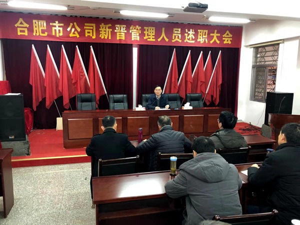 1月8日,合肥市公司召開新晉管理人員述職大會,公司領(lǐng)導(dǎo)班子成員、新晉中層管理人員、部分職工代表,各縣(市)公司領(lǐng)導(dǎo)班子成員參加了會議,會議由黨委書記、董事長張鷹主持。