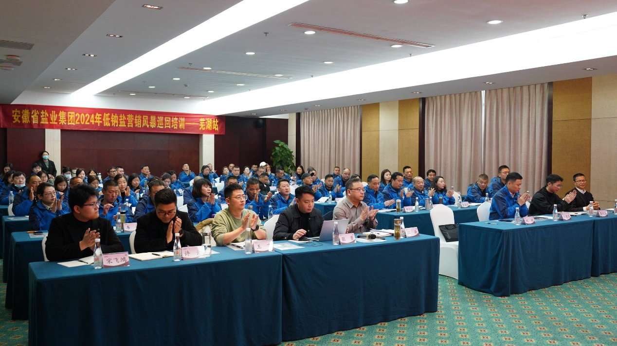 為進一步提升全體員工的營銷技能,提高低鈉鹽在市場供給中的比例和普及率, 3月28日上午,由安徽鹽業集團牽頭組織的2024年低鈉鹽營銷風暴巡回培訓——蕪湖站順利召開,蕪湖市縣公司共70余名職工參加培訓。