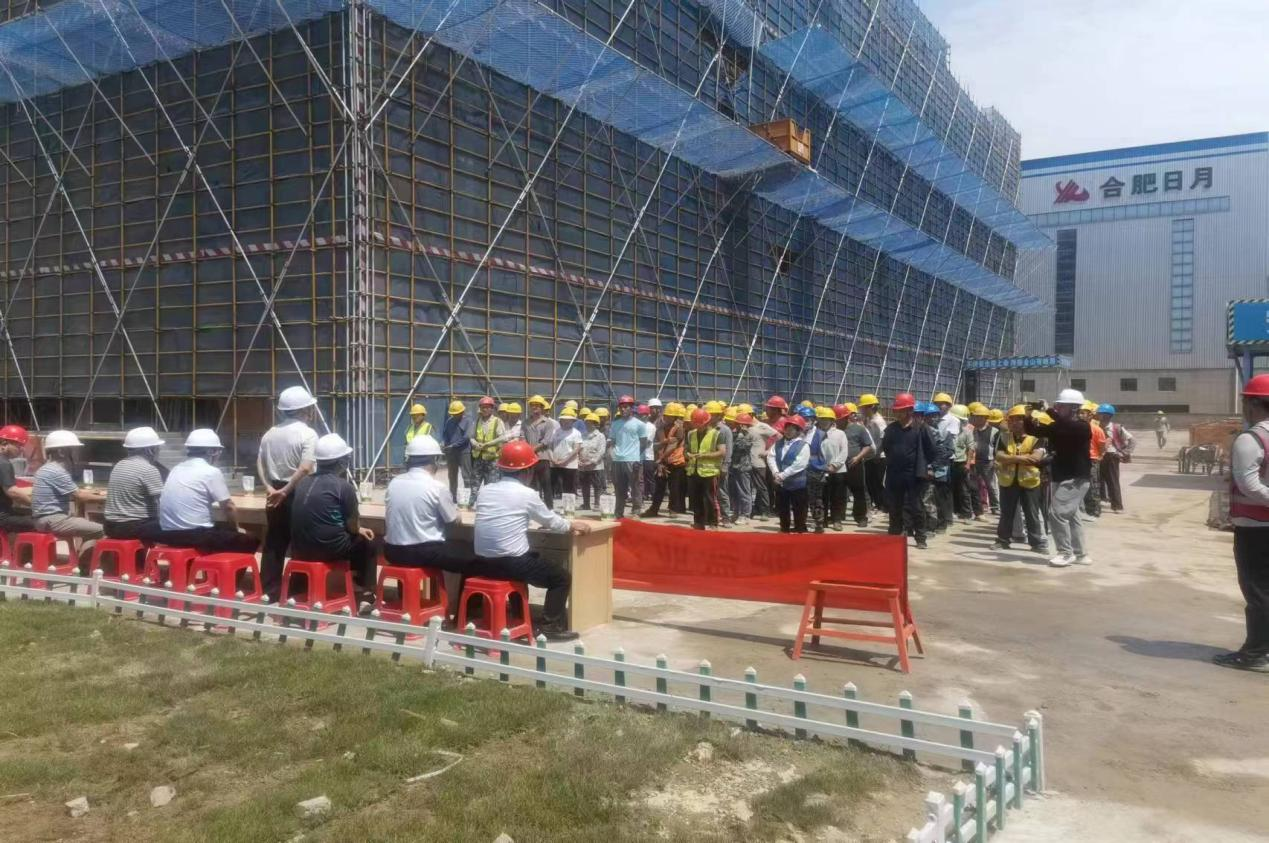 建設(shè)單位合肥市鹽業(yè)公司張鷹董事長(zhǎng)宣布安全月啟動(dòng),并在啟動(dòng)儀式上強(qiáng)調(diào):合肥鹽業(yè)冷鏈?zhǔn)称芳庸ぶ行捻?xiàng)目在各相關(guān)單位的相互配合下,在各位工友的辛勤勞動(dòng)下,工程主體結(jié)構(gòu)已經(jīng)施工完成,對(duì)廣大一線施工人員的辛勤付出表示感謝。在第23個(gè)全國(guó)安全月來(lái)臨之際,應(yīng)該深刻認(rèn)識(shí)到安全的重要性。生命無(wú)價(jià),預(yù)防安全是每個(gè)人的責(zé)任。即將進(jìn)入高溫天氣,一定要在確保安全的前提下,控質(zhì)量,抓進(jìn)度,注意人身安全,平平安安的完成好冷鏈項(xiàng)目建設(shè)。