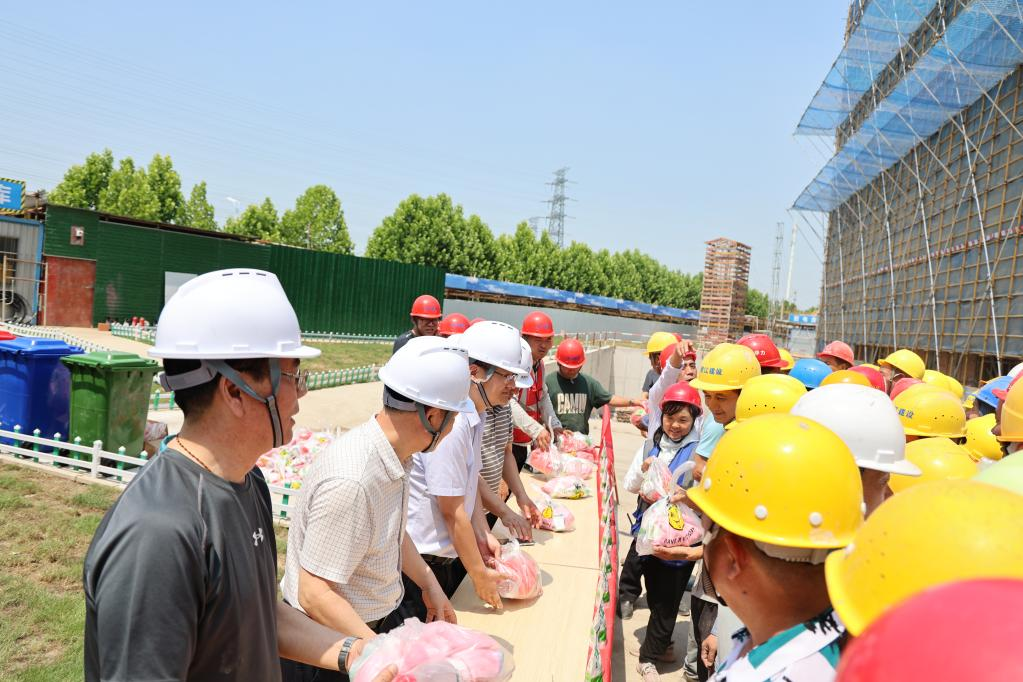 省鹽業(yè)集團(tuán)紀(jì)委書記劉衛(wèi)忠、合肥市鹽業(yè)公司領(lǐng)導(dǎo)班子、地產(chǎn)集團(tuán)代建項(xiàng)目部、監(jiān)理公司及施工單位項(xiàng)目經(jīng)理、安全員及各施工班組共計(jì)100余人參加了此次安全月啟動(dòng)儀式。現(xiàn)場(chǎng)發(fā)放了防暑降溫用品120余份。